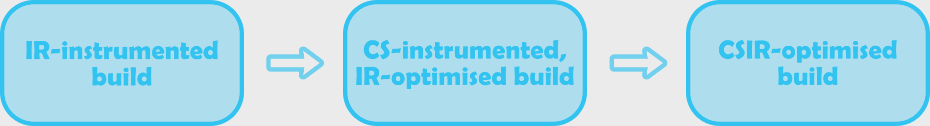 The alternative to FE PGO would be holding off instrumenting until the middle-end, once the compiler has already started making optimisations. Thanks to LLVM’s modularity it is absolutely possible to slot an IR instrumentation pass into the toolchain, and, because the IR will be partway optimised once it gets here, that instrumentation will incur a much lower run-time overhead. This is intermediate representation PGO, and for the avoidance of any doubt - it’s just better.